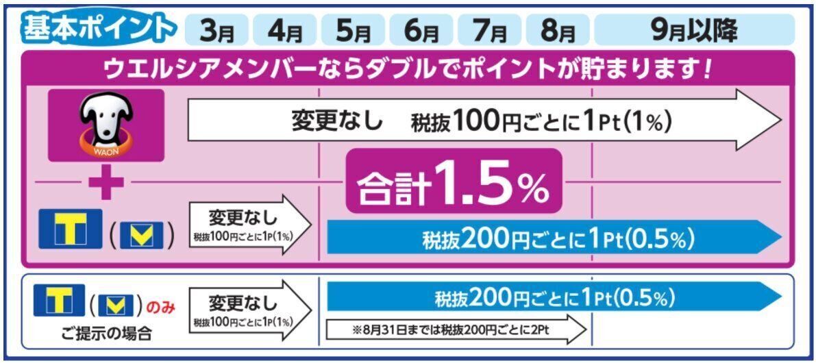 - 5月からウエルシアで得するのはほぼWAONポイントのみに