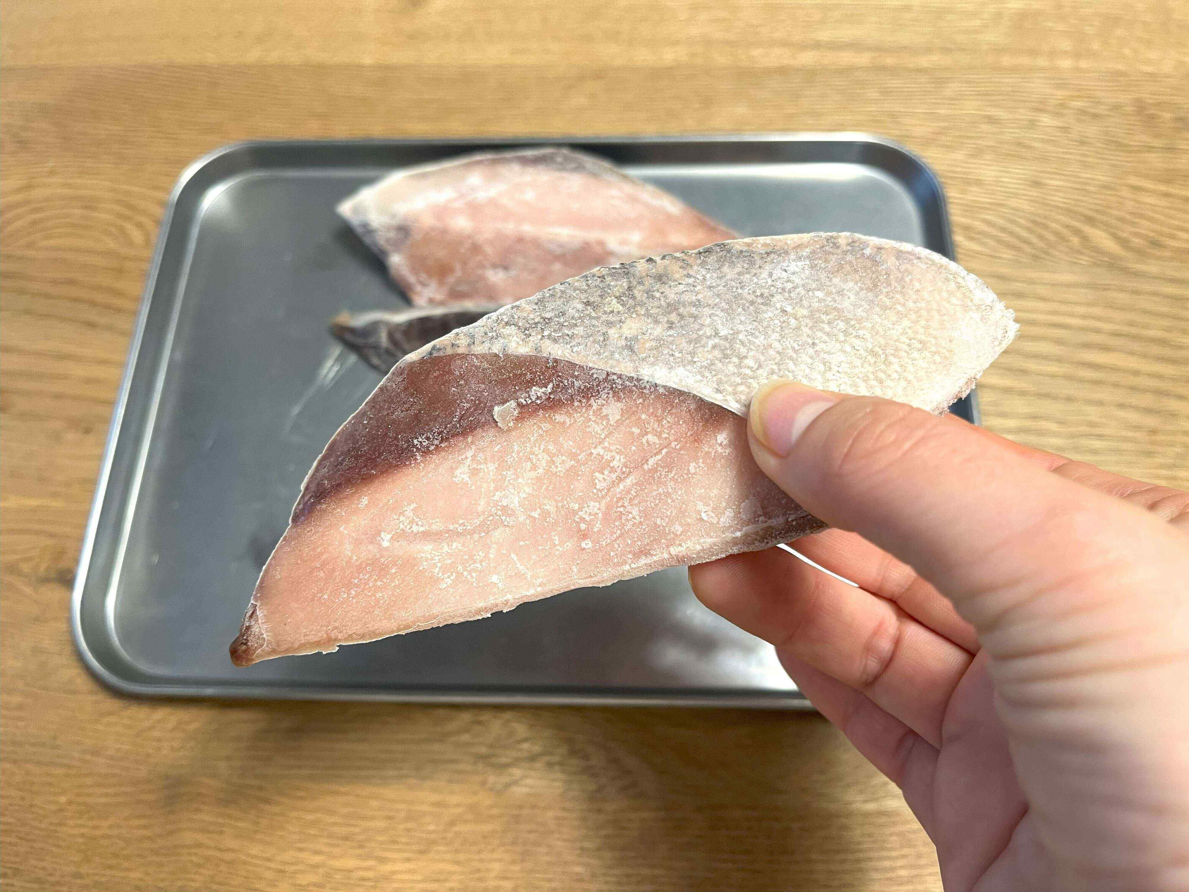 あらかじめ骨が取り除かれているので、小さいお子様からご高齢のかたにも安心して食べられる商品となっています。5切れ入りで、一切れあたりのサイズ感は15cm前後とボリューム満点。冷凍のサバによっては、少し塩味が強いものがありますが、こちらは程よい塩加減なので事前に塩抜きなしでも食べやすいのが特長です。