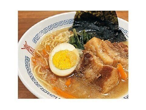 市販のラーメンでも、手作り焼き豚をのせれば豪華! 煮汁につけた自家製味たまもオン。