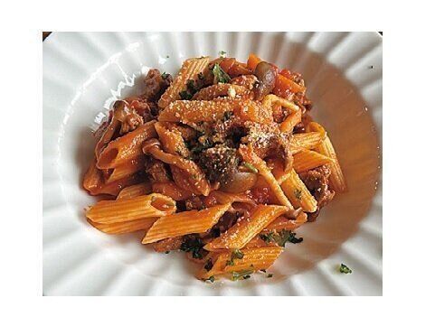 ハヤシライスのソースを多めに作り、ゆでたショートパスタとあえればお店の味が完成。