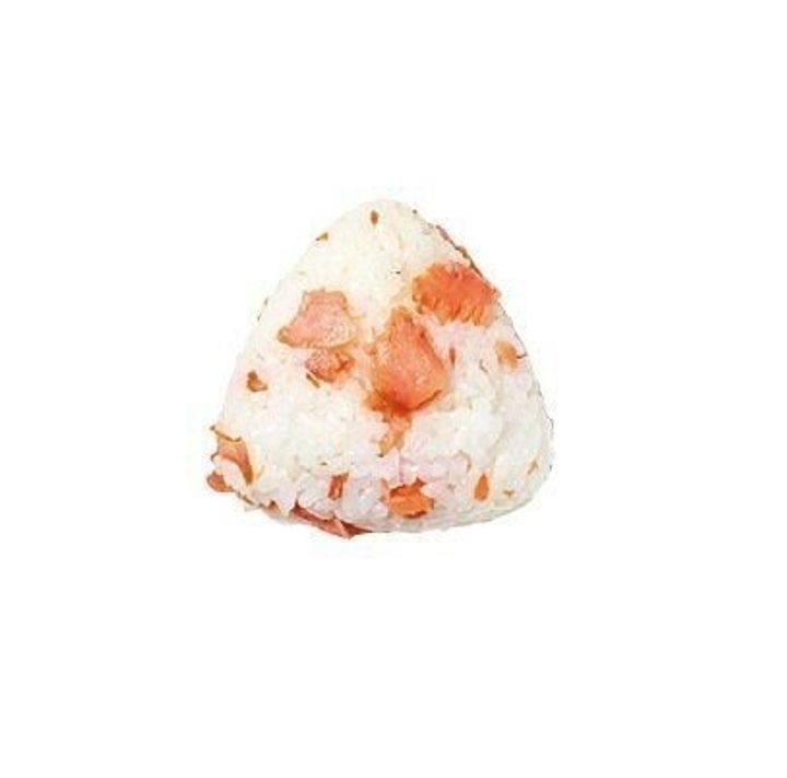 焼いてほぐした鮭をみりん、塩、しょうゆで軽く炒めて自家製フレークにして握る。