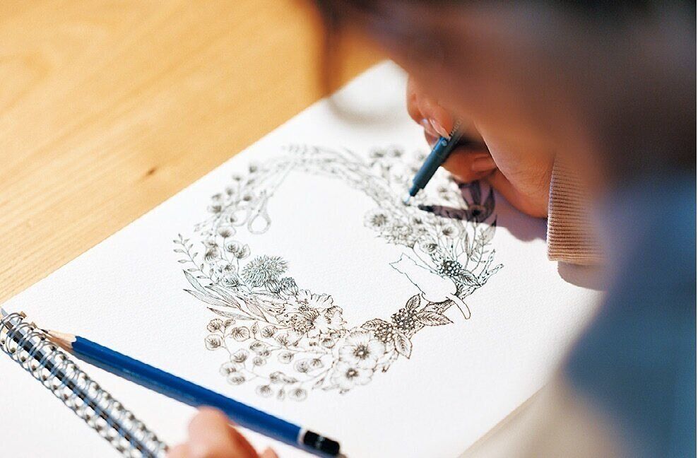 何も考えたくない日、どこかに逃げ出したい日に、静かな部屋で、スケッチブックに思いつくままに絵を描きます。外からの情報を遮断する時間は、心の断捨離(R)にもなります。