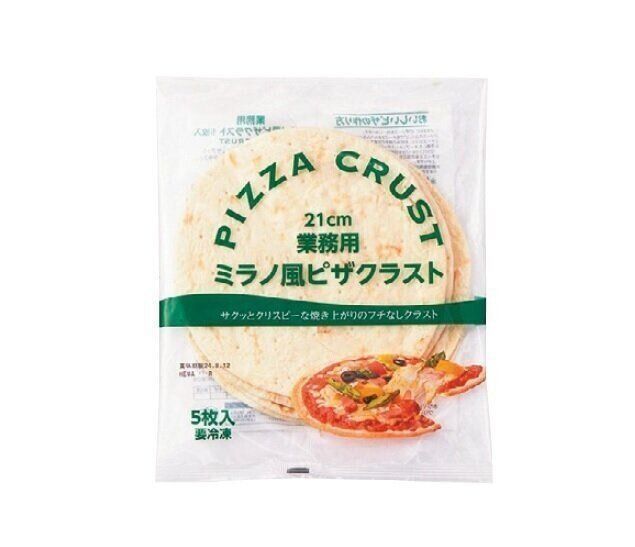 「ミラノ風ピザクラスト」は、サクサクとした食感のピザ生地。ピザソースを塗って、在庫食材とチーズをのせて焼くだけで、外食気分が味わえます。