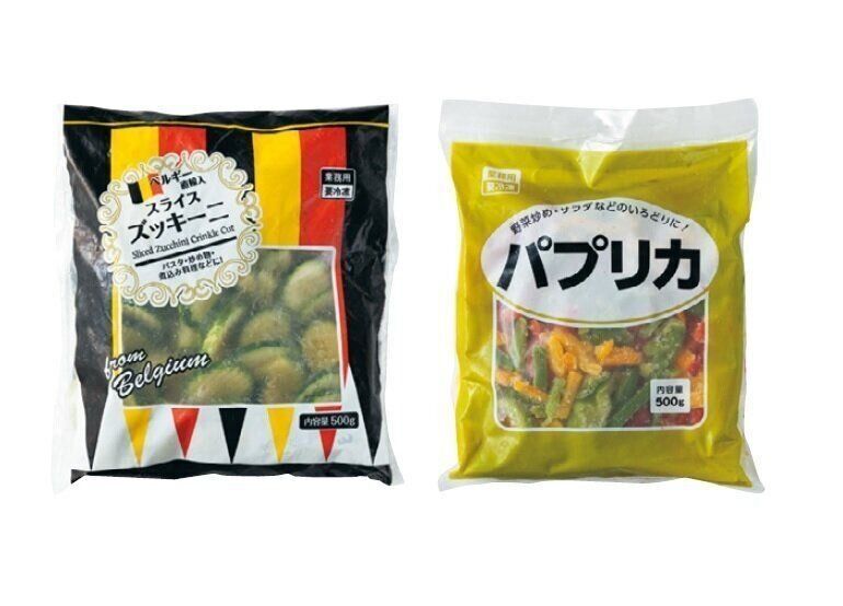 「冷凍パプリカ」(500g)¥203、「スライスズッキーニ」(500g)¥253 /業務スーパー