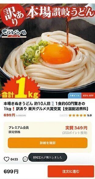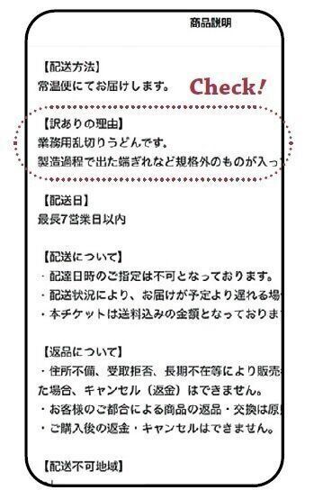 商品によって訳ありの理由が違うので要チェック。業務用のため価格が安い、送料無料の「さぬきうどん」を購入することに決定!