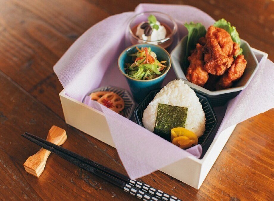 環境が限定された船では、目でも食事を楽しんでもらえるよう意識していたそう。ママ友とのランチは重箱と小鉢を組み合わせて盛りつけ。いつものおかずやおにぎりも、色や形が違う小鉢に盛りつければ特別感がアップ!