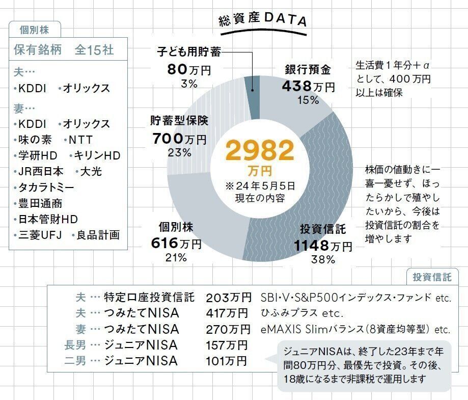 「家族で過ごせる時間は限られているから、子どもが小さい今は、夫も私も家での暮らしを大事にしたい」。自分たちがフルに働かない分を運用利益でカバー。