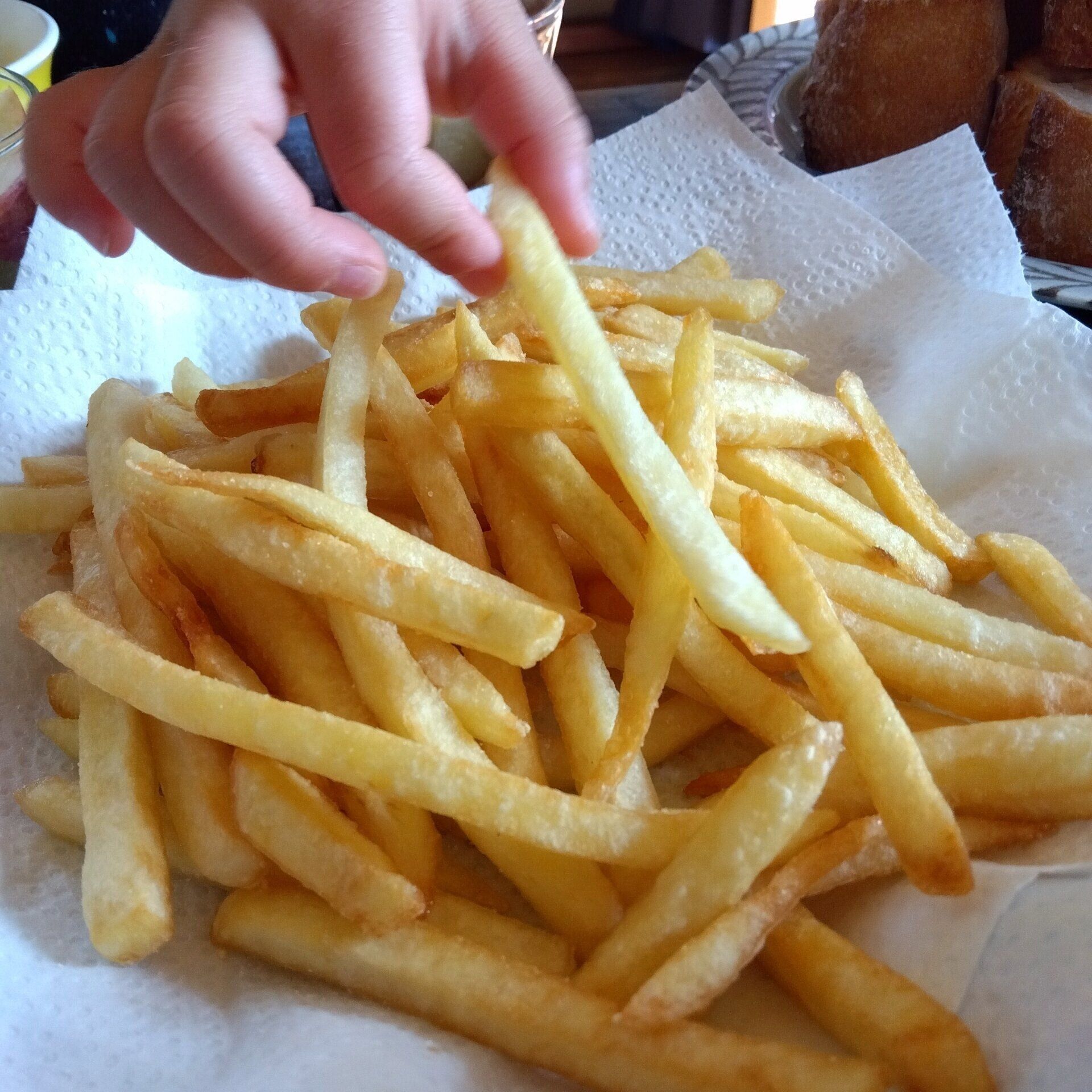激安スーパーで1kg378円のポテトを購入し、「これでもか!」というほど揚げました。いつもは食事中にウロウロしたり、おしゃべりばかりで箸が進まない息子も、このときばかりは無言で間食。