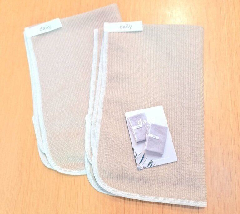 このクロスを使うまで、そこまで差はないのではと思っていましたが、私のなかでは90点と高得点。水が伸びにくいクロスなので、伸びないわけではありませんが、色やサイズ感、シンプルだけどかわいらしさもあって気に入っています。
