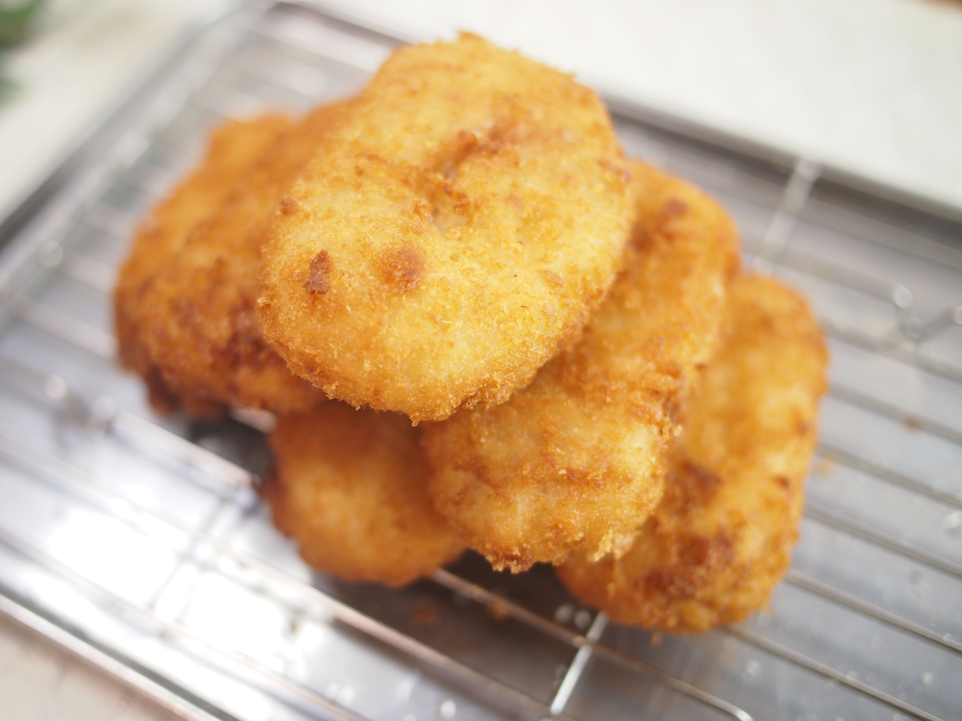 業務スーパーの米油で実際に揚げてみました。そっと油に入れれば飛び跳ねることもないので、揚げ物が苦手な人も調理しやすい印象。焦げやすい感じも見受けられなかったので、失敗することも少なそうです。