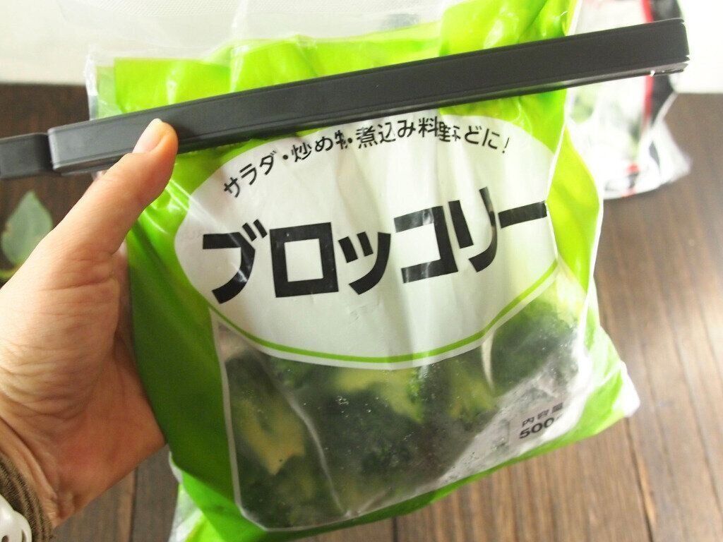 業務スーパーの冷凍野菜はパッケージがパッと見てわかるデザインとロゴになっているので冷凍庫をあけたらパッと色でわかる利点も生かせるので、筆者はできるだけ袋クリップで保存するようにしています。