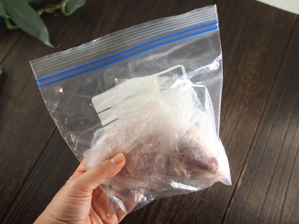 一つ一つラップをするのは手間がかかりますし、完全に解凍するときのドリップが外に漏れにくい利点も。