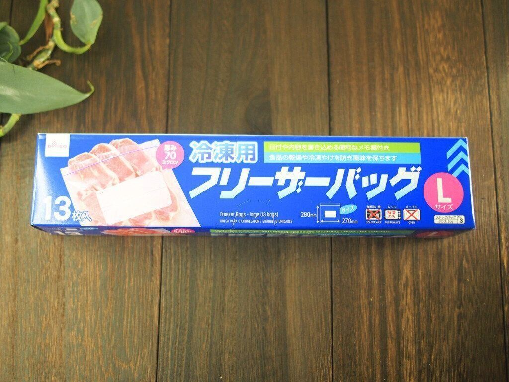 一つ目は冷凍食品の保存に使うフリーザーバッグ。その中でもLサイズが業務スーパー商品の保存にピッタリなのです!