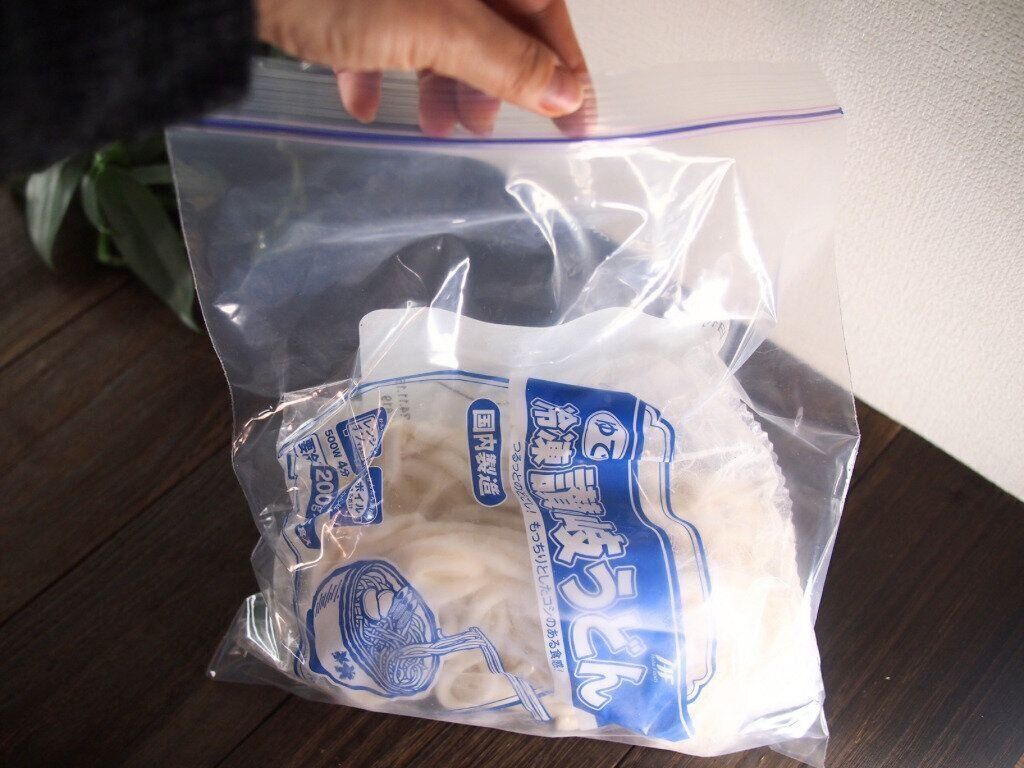 大人気商品の冷凍うどんやピザ生地は一度に食べきれないことが多いので冷凍庫に保存しておく場面が。