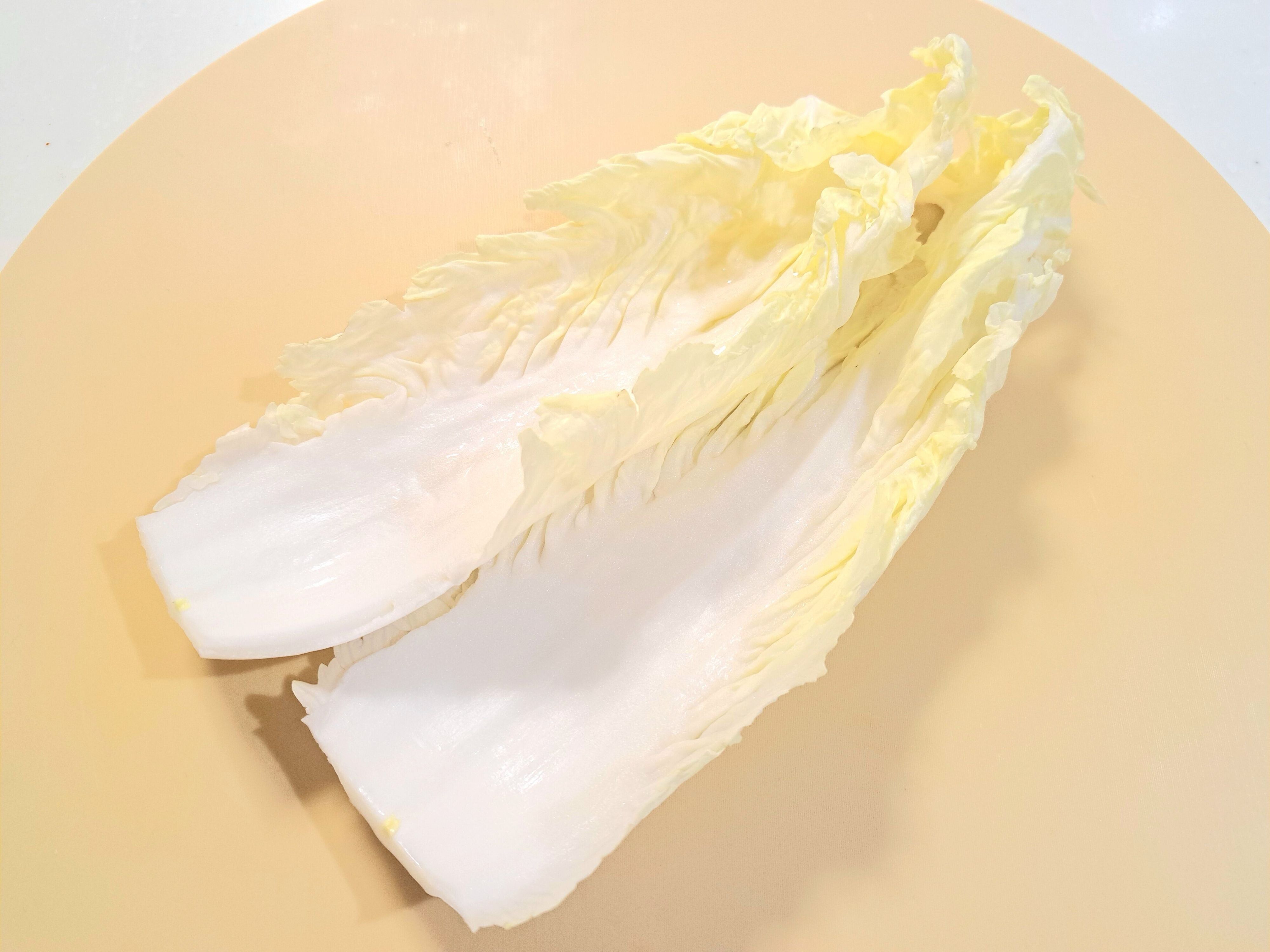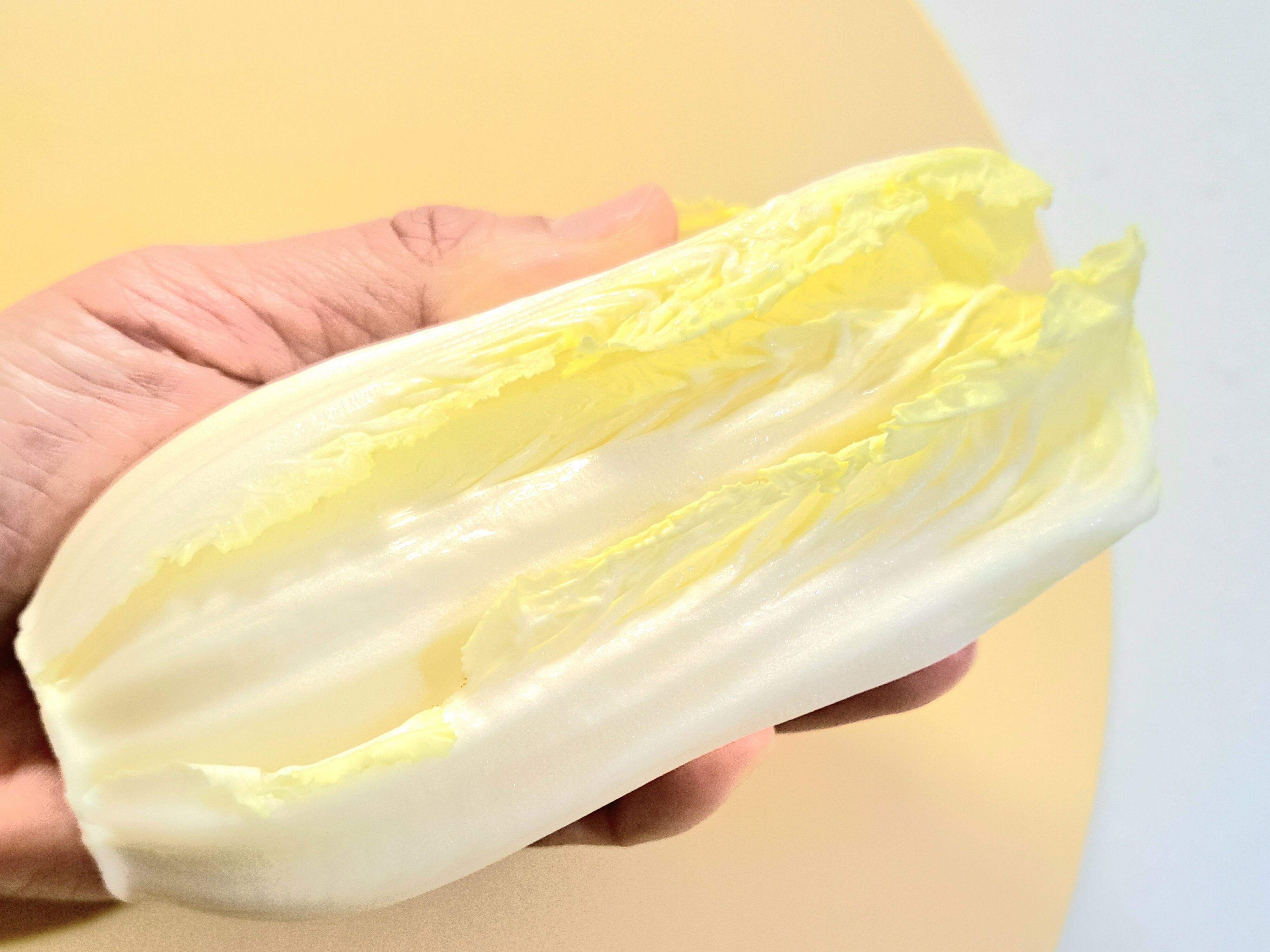 手のひらサイズになるまで、常に外側から使い続けた購入日から55日目の白菜です。このように毎回傷むことなく、葉もピンとした状態で最後までしっかり使いきることができています。