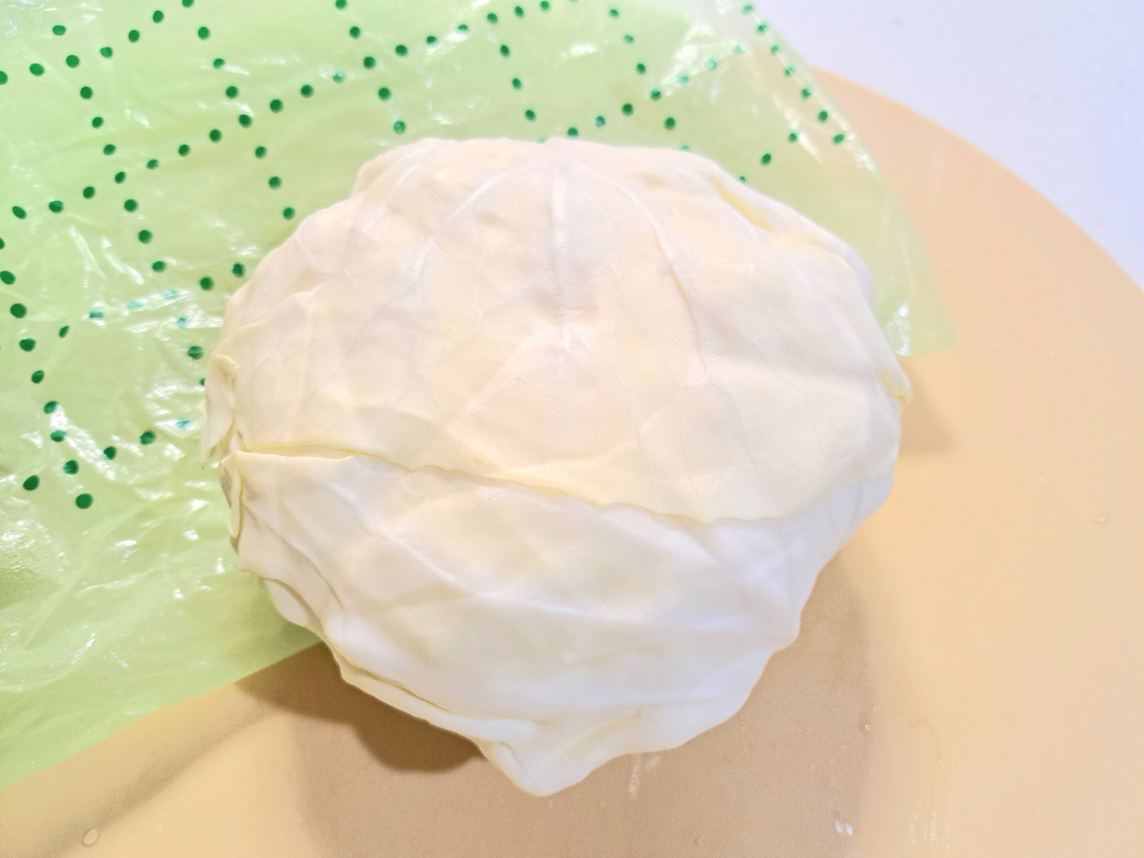 キャベツも外側から使っていくことで、常にキレイな状態を保てています。キャベツは特に、カットしてしまうと断面がうっすら黒くなりはじめるのが早いので、カットして使うときは、大量消費するお好み焼きなどの使いきれる料理のときのみとマイルールを決めています。