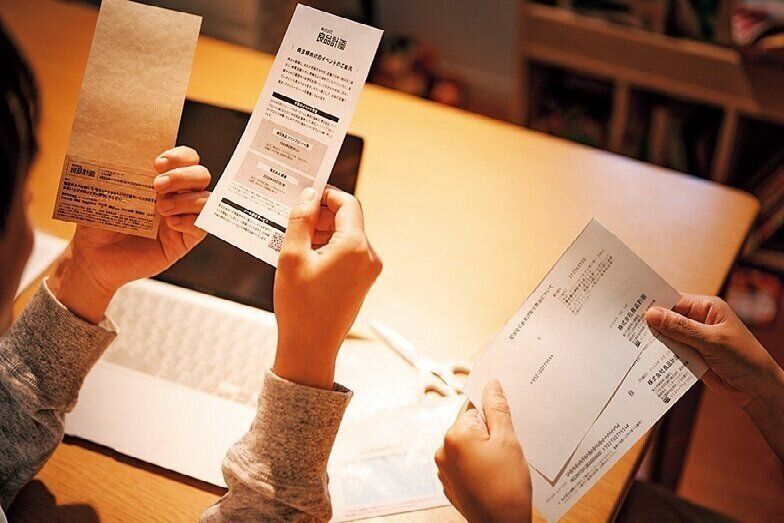 子どもたちを寝かしつけたら、投資先企業から届いた郵便物をチェック。「決算報告書を読んだり、議決権行使書に記入したりします」。