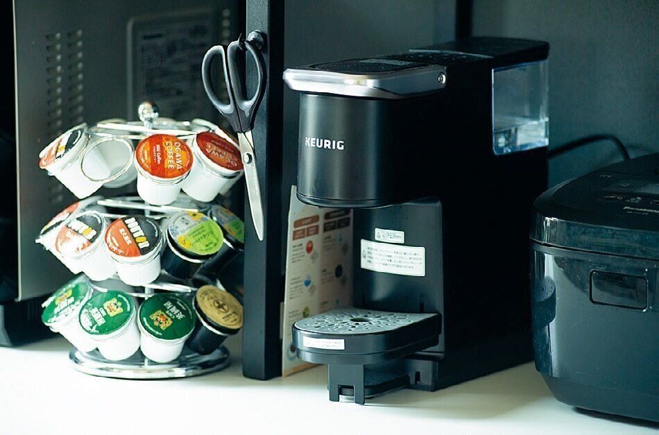 時短できる家電はどんどん投入!「ワンタッチでできるコーヒーメーカーを導入したら、バタバタする朝がラクに。1杯100円でこのゆとりが買えるなら安いものです」。