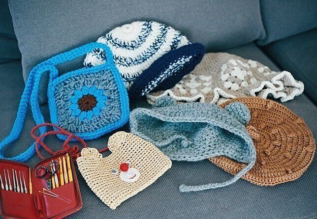 家計管理を優先しつつ、義母に教わったかぎ針編みを家計の足しにしています」。アプリ「minne」でニット帽やポシェットなどを販売し、収入をGET。