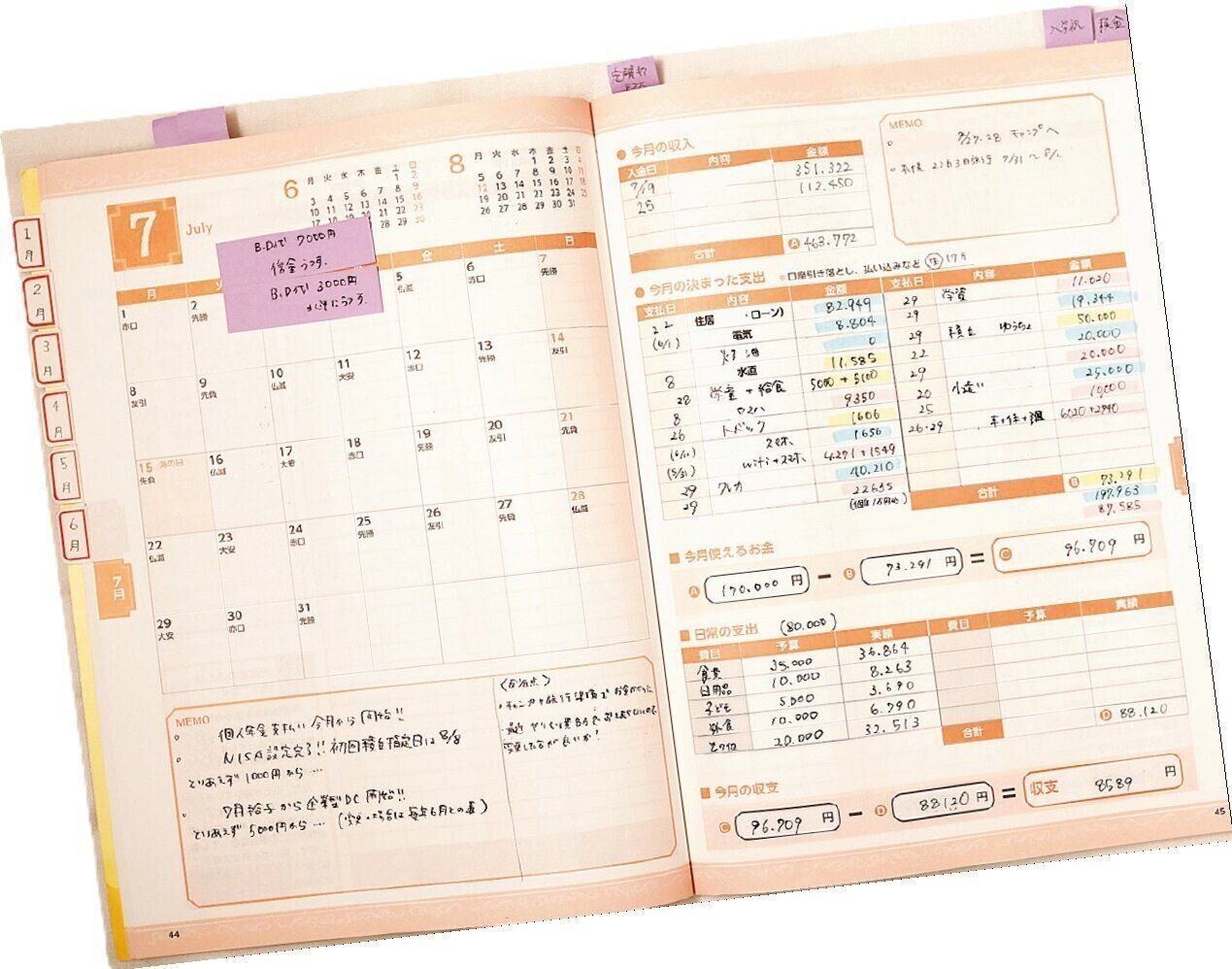 独身時代から、ノートに書くことで、頭の中を整理する習慣があったMさん。結婚後は、夫婦で貯蓄目標を立て、家計簿を書きながらゲーム感覚でどんどんクリアしています。「やりくりを頑張るためにも、ご褒美が欲しかったので幻のボーナスが生まれる“35日家計簿”をスタート。家計は人によって違うから、わが家流のやり方で楽しく管理しています」。