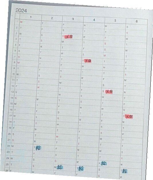 ●35日家計簿とは?マンスリーページに、給料日と家計の締め日を記入