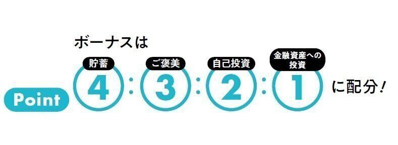 ボーナスのうち、投資に回すお金の目安は1割。元本割れしているタイミングで急にお金が必要になり、売却して損することがないように、4割は貯蓄に回します。あくまでも目安なので家計の実態に合わせて調整して。