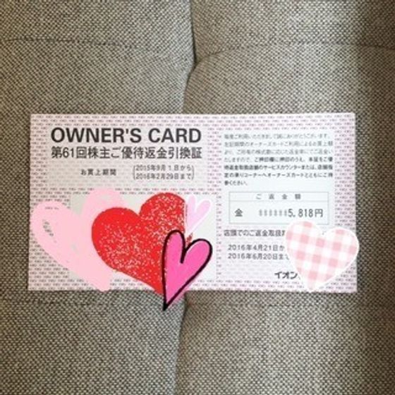 サンキュ!ブロガー小比類巻亜弥さんは、イオンの株主でなんと現金をゲット! 使った金額に対しての返金制度が優待としてあるそうです。家族カードもあると、すべてまとめて返礼が受けられるので、それだけでも結構な金額になるんだとか!