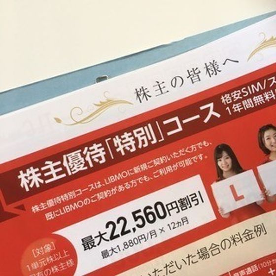 サンキュ!ブロガー小林りなさんは、株主優待で格安SIMの1年間無料コースをゲットしました。使用料1880円が12カ月分無料なので、最大約2万円もお得に! ほかにもさまざまな品物が選べたそうですが、ちょうど格安SIMの乗り換えを検討していたところなので、迷うことなくこれに決めたそうです。