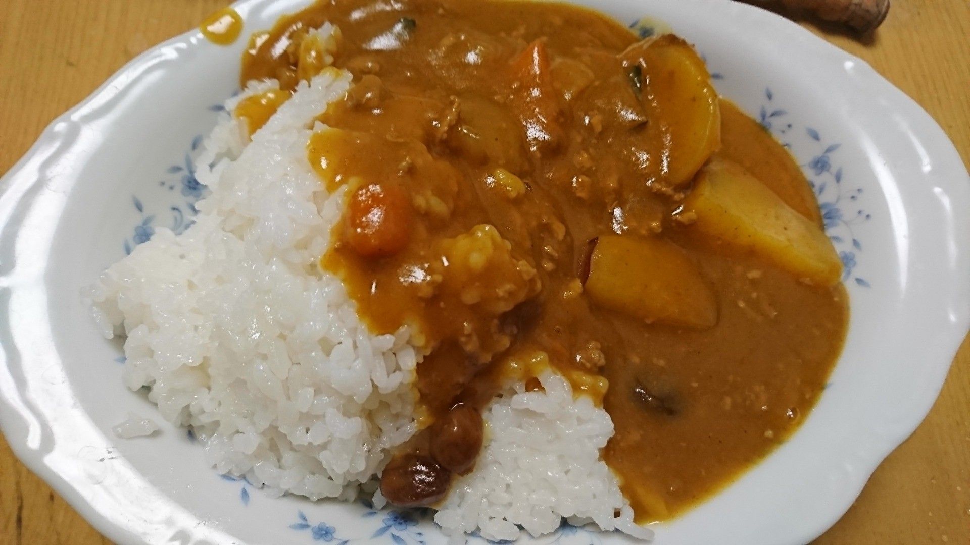 購入した業務用カレールウに、レーズンにかぼちゃ、さつまいもを入れたカレーが子どもたちに大人気です。隠し味としてニンニクと生姜、ブルーベリージャムとバターを加えて、甘くてコクのある美味しいカレーにアレンジ。業務用で作っているので、ボリュームもありお腹を満たしてくれますね。