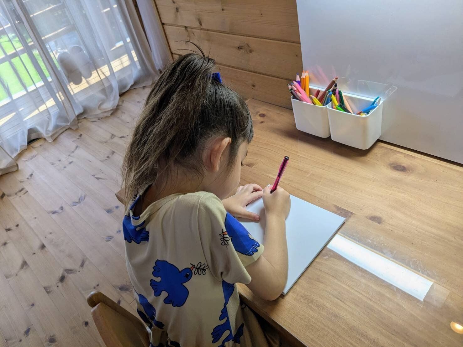 筆者宅ではおもに子どもたちの遊び道具になっている、このノート。自作の絵本や図鑑をつくるのにピッタリなアイテムなんです。水族館や動物園、植物園に持って行ってスケッチをするだけで、思い出の1冊が完成します。