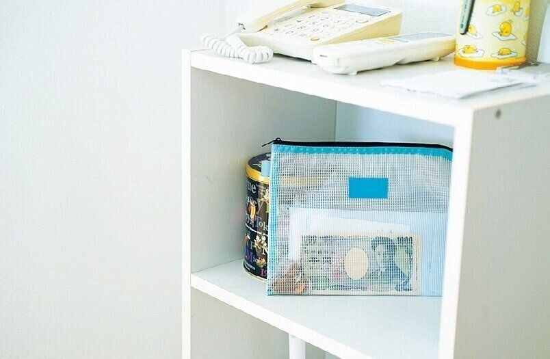 「ポーチに予算額を入れて決まった場所で保管する仕組みに。夫や長女も自分で必要なお金を取り、家族みんなが自然と残金を意識するからラクなんです」。