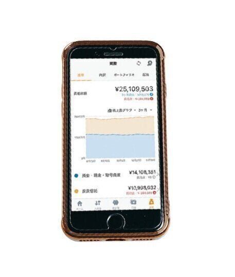 銀行口座や証券口座と連携すれば、計算する手間もなく総資産額が見れるので管理がラク。「夫と一緒に右肩上がりのグラフを見て、貯蓄意欲も共有してます」。
