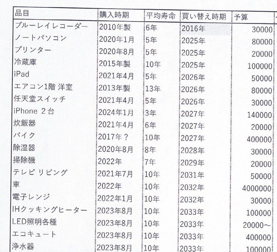 特別出費表をもっと完璧な表にする【家電寿命一覧表】