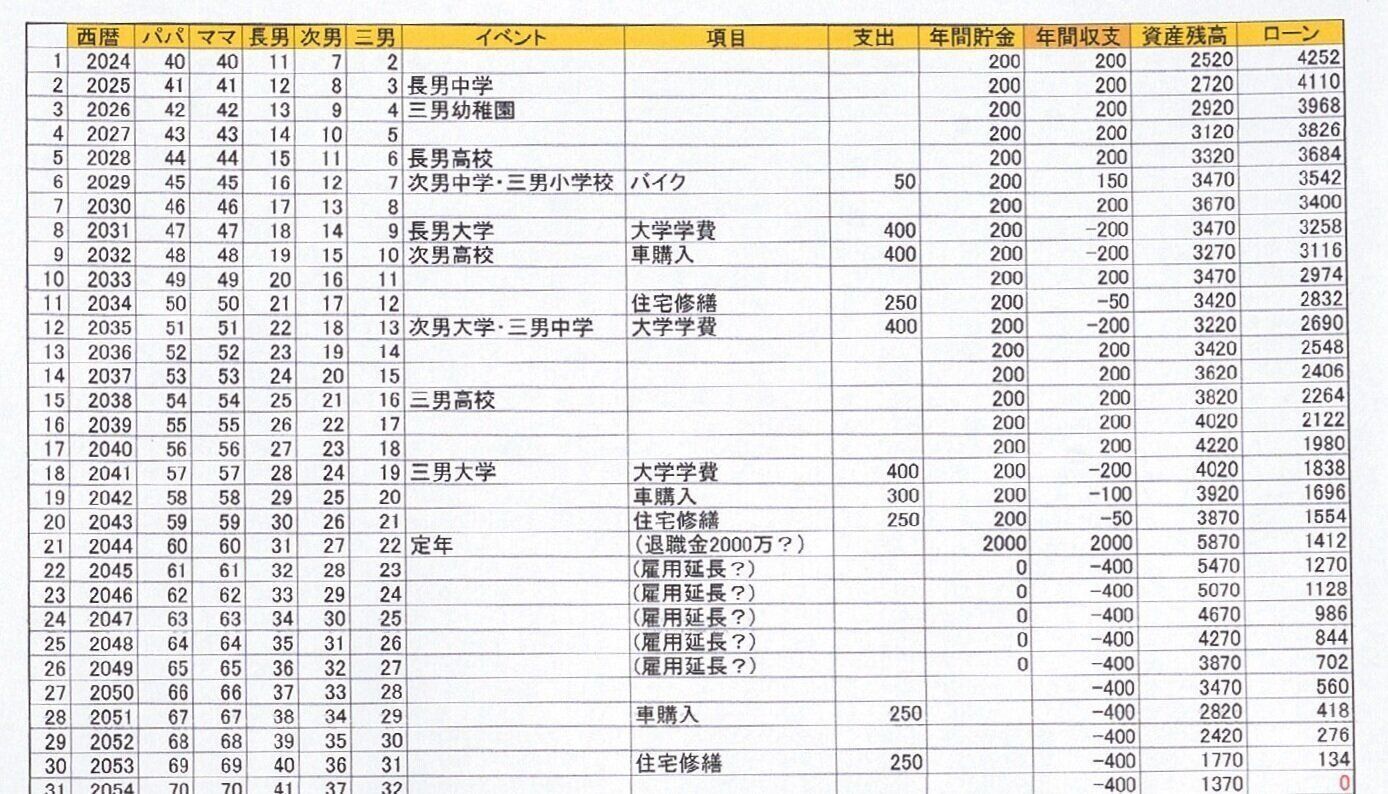 【ライフイベント毎に更新】年毎に、イベントと収支を記入。日々のやりくりモチベがUP