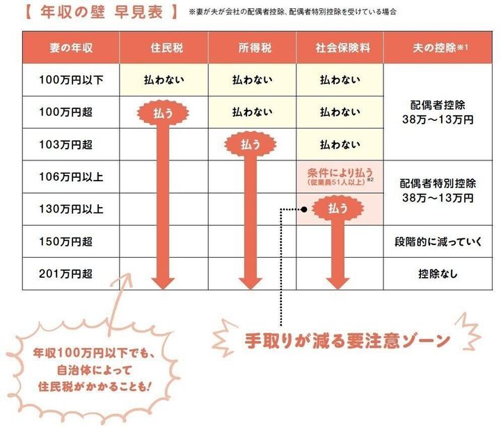 ●年収100万円超で住民税、年収103万円超で所得税がかかります