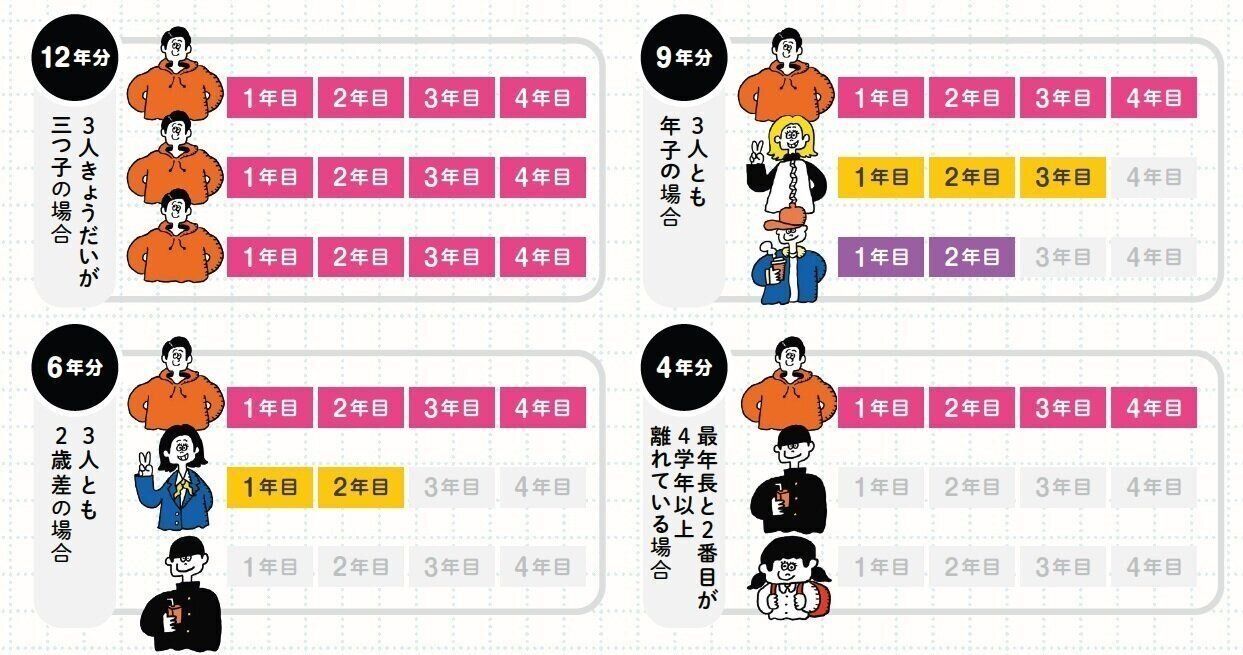 同じ3人きょうだいでも、年齢差によって支援を受けられる年数に大きな差が!