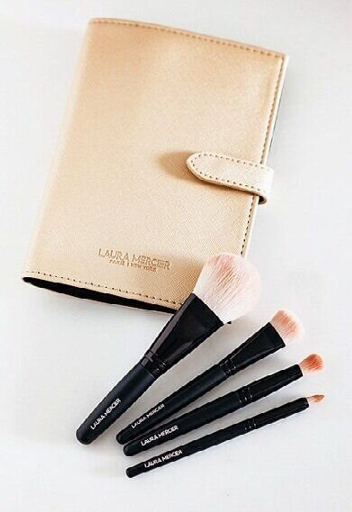 「メイクの仕上がりを左右するブラシは、質がいい物を選んでいます。このブラシは、クリスマスコフレの限定セットでお得に購入」。