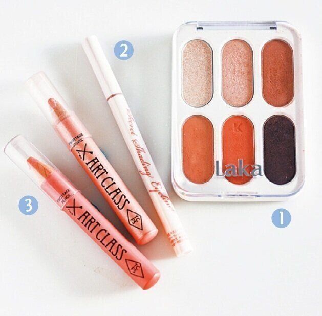 (1)Laka アイシャドウパレット、(2)ヒロインメイク 影色シークレットアイライナー、(3)TOO COOL FOR SCHOOL アートクラスフロッタージュペンシル(涙袋ライナー)