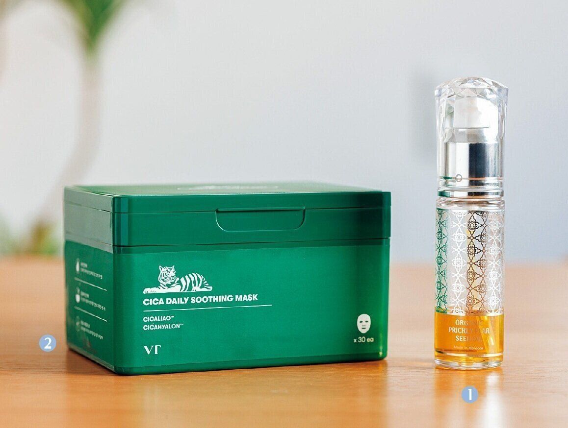 「粉吹きするほどの超乾燥肌。ウチワサボテンオイルを先に塗ると、化粧水の浸透もよくなるし、化粧ノリが全然違います!韓国発で人気のシカマスクもおすすめ。コスパがよく、毎日気兼ねなく使えます」。
