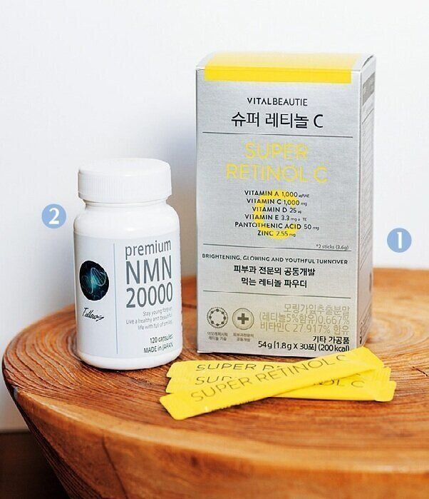 (1)VITAL BEAUTIE スーパーレチノール、(2)β-premium NMNサプリメント2000