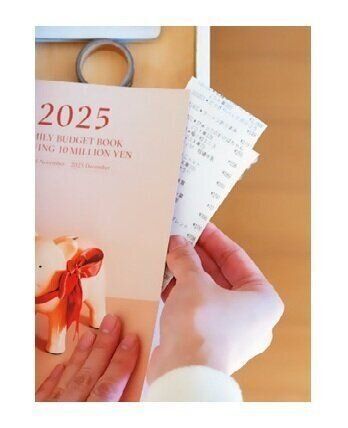 レシートを家計簿にはさみ、月曜日にまとめて記入。週末に出費が増えるので、戒めとして週明けに家計簿をつけ、貯めマインドをアップ。
