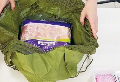 袋詰め 冷凍肉を保冷剤代わりに!エコバッグは必ず持参