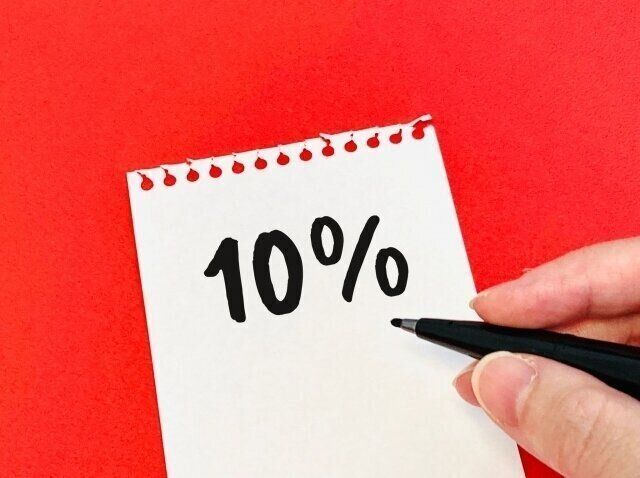 つまり、実質的な割引率は、100円÷1,100円=約9.1%となり、現金で10%値引きよりも、値引率が下がります。