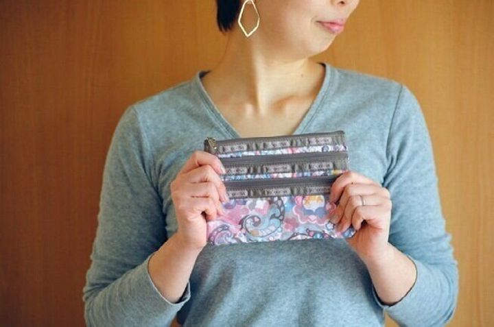 ポーチの1段目に「特別出費用」の予備費、2段目に「週1万円×5週分」の予算、3段目に週予算の残りを入れるだけ。予算の残りで外食するなどお楽しみがあるから長続き。