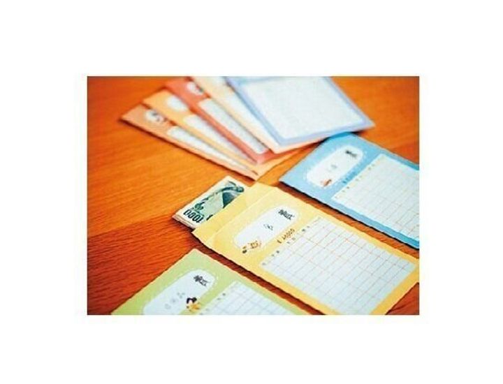 「月1回、生活費の予算を下ろし、費目ごとに袋分けするだけ。あといくら使えるかが目で確認できるのが一番効果的!」。カード払いしたときも、支出分を取り分けて、使い過ぎをセーブ。
