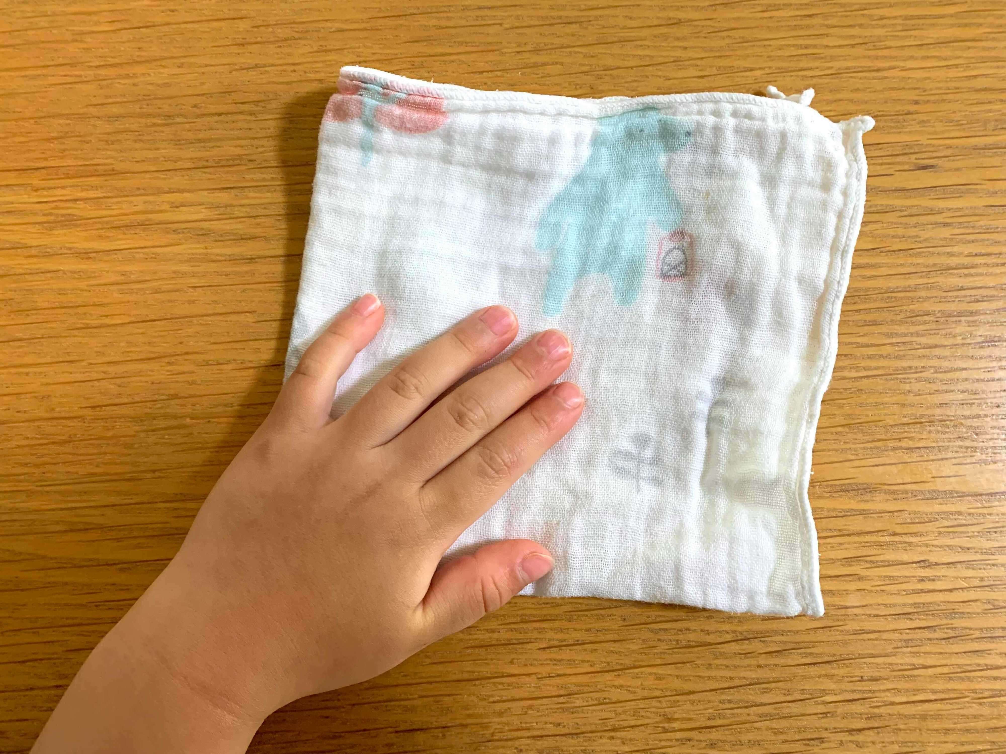 取り出しやすいところに数枚用意しておけば、子どもの口元を拭いたり、食べこぼしを拾ったりとティッシュ感覚でどんどん使えます。使用後は、水洗いして洗濯機にポイ。薄手のものであればすぐに乾くので、お手入れかんたんで気持ちよく使えます。