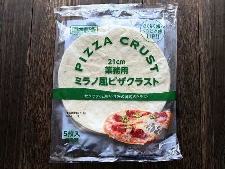 この「ミラノ風ピザクラスト」は、好きな具材をのせてオーブントースターで焼くだけなので、とにかく手軽。生地のサイズもちょうどよく、食べたいときにさっと焼ける便利さで、わが家でもリピートしています。