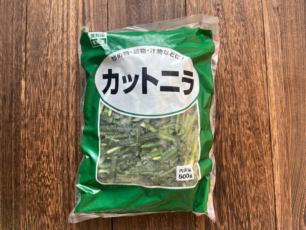 生のニラは日持ちしにくく、使い切れずにしなしなになったり黒くなってしまうこともありますが、冷凍野菜で買っておくと必要な分だけ取り出して使えるので、ロスも出にくいため、わが家では定期的にストックしています。