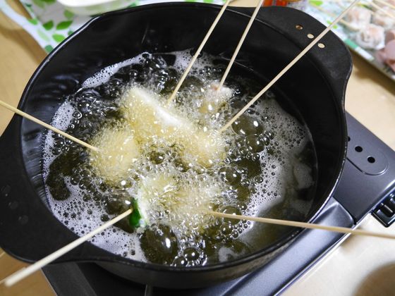 同じくサンキュ!ブロガーみい太さんの、おうち外食メニューは串揚げ!これなら下準備も含め子どもたちにも手伝ってもらえますし、何よりやってて楽しい!ほかには複数のレトルトソースを準備して、大量にパスタ麺をゆがきパスタビュッフェも開催したそうですよ。