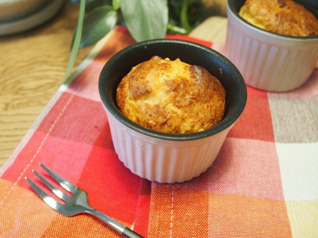 【作り方】上記を全部混ぜて、耐熱容器やマフィン型に入れて予熱した200度のオーブンで20分焼けば、プリンマフィンの完成です。